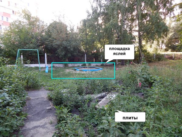 наконец-то настал май, солнечные дни и наших детей вывели на улицу, какой я испытала шок, когда я увидела нашу территорию, которая состояла из песочницы и нескольких покрышек, бегать и прыгать запрещалось (рядом ямы, плиты и заросли крапивы), дети сидели только в песочнице (((((( (на 1-ом фото видно - это печальное место).